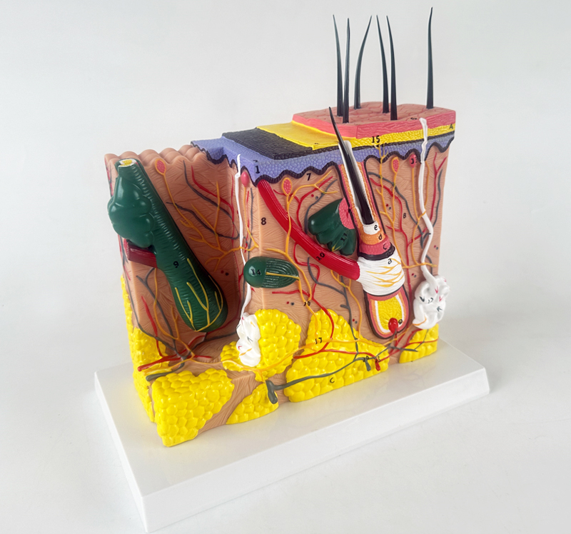 , ktorý zobrazuje hlbšiu mikroskopickú štruktúru kože (vlasový folikul, potná žľaza).